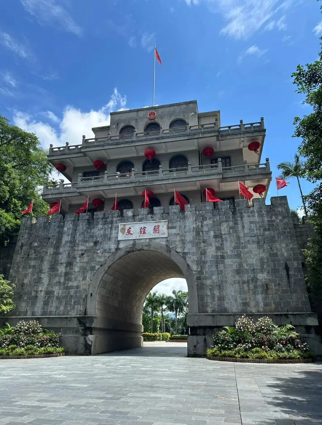 早餐后赠送越南谅山边关游,前往友谊关景区关楼广场集中(车程约 20 分钟,18KM),经我国九大名关之一友谊关出境。友谊关作为南疆重镇边陲咽喉,它与山海关、紫荆关、居庸关、嘉峪关等,合称为中国九大名关,友谊关景区有【 法式楼、关楼广场、联检大楼及广场、南疆国门第一路、零公里、友谊关第 1117 号界碑 】 等景点。中国领队带领团队排队办理出入境手续(入境时间约30 分钟左右,视过关人数而定)。