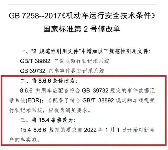 新生产的乘用车必须配备EDR系统