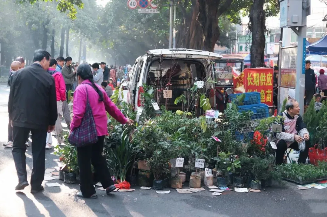 从街头到街尾,摊位一个挨着一个,新鲜的蔬菜水果、花草鱼苗、衣食住行、吃喝玩乐,应有尽有,只有你想不到,没有你买不到。