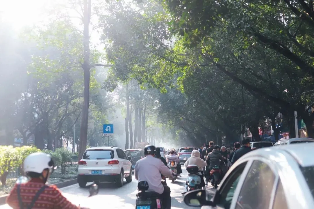 原本宽敞的马路,被一个个临时搭建的摊位占得满满当当,五颜六色的招牌在晨光中摇晃,仿佛在向人们发出热情的邀约。