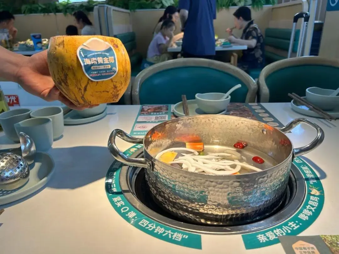 椰子鸡别贪重口,汤要淡,鸡要嫩,蘸料就小米椒加酱油。