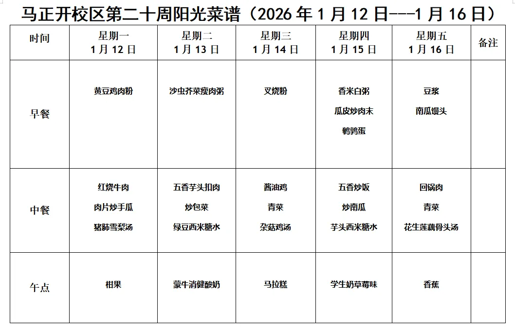 第二十周阳光菜谱