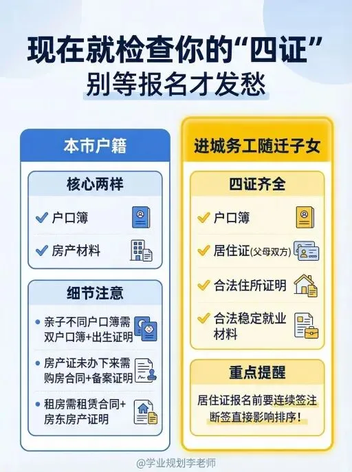 等到6月报名系统一开,才发现:居住证断签了、房产证还没下来、户口迁移没办完……什么感受呢?就像考试前一天才发现准考证丢了,急也没用,悔也来不及了。