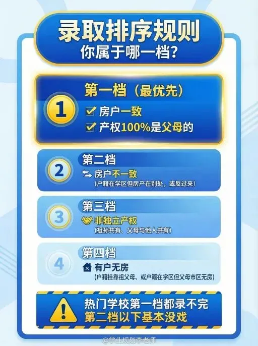 更扎心的是,热门学校学位紧张,优先录取"房户一致且户籍迁入满1年"的孩子,后面的排队候补,录满即止。你材料差一点,可能就差了一整个学校。