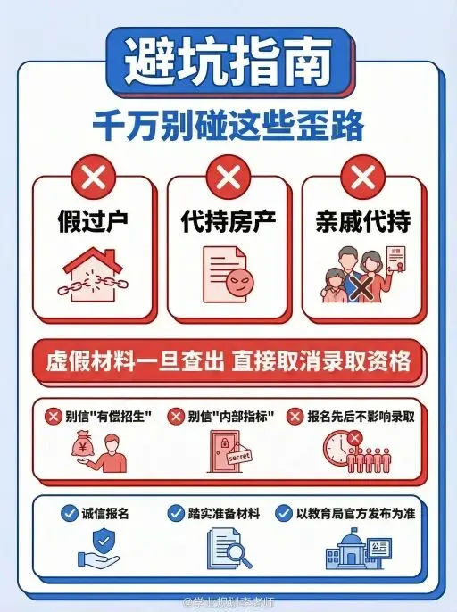 每年都有家长自作聪明,搞什么亲戚代持、假过户,觉得能钻政策空子。告诉你,学校会核查房产实际居住情况,虚假材料一旦查出,直接取消录取资格。到时候不仅进不了好学校,连普通学校都可能出问题。