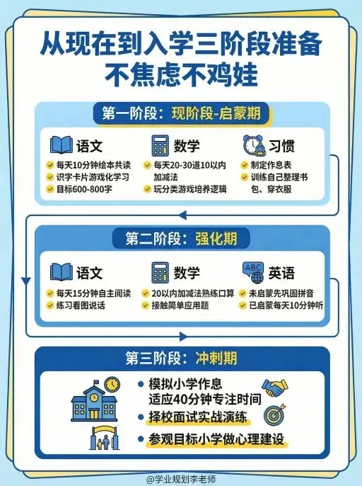 5、从现在到入学,分三个阶段准备,不焦虑不鸡娃。