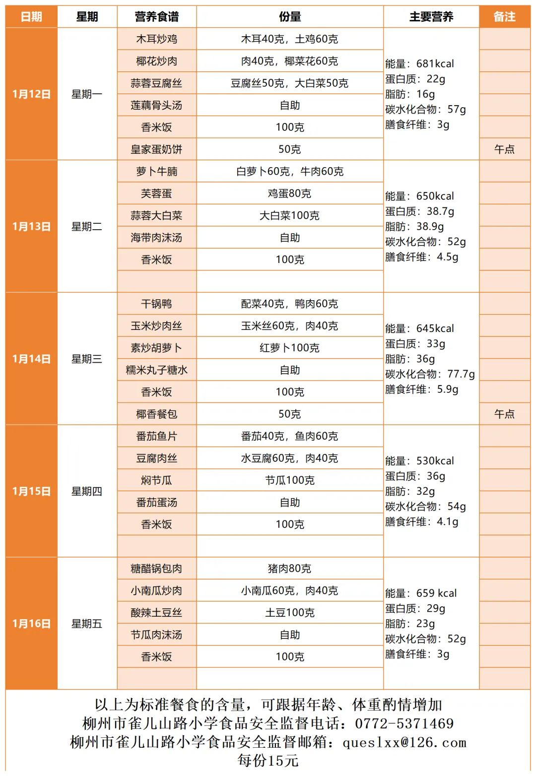 柳州市雀儿山路小学午托食堂第二十周食谱公示
