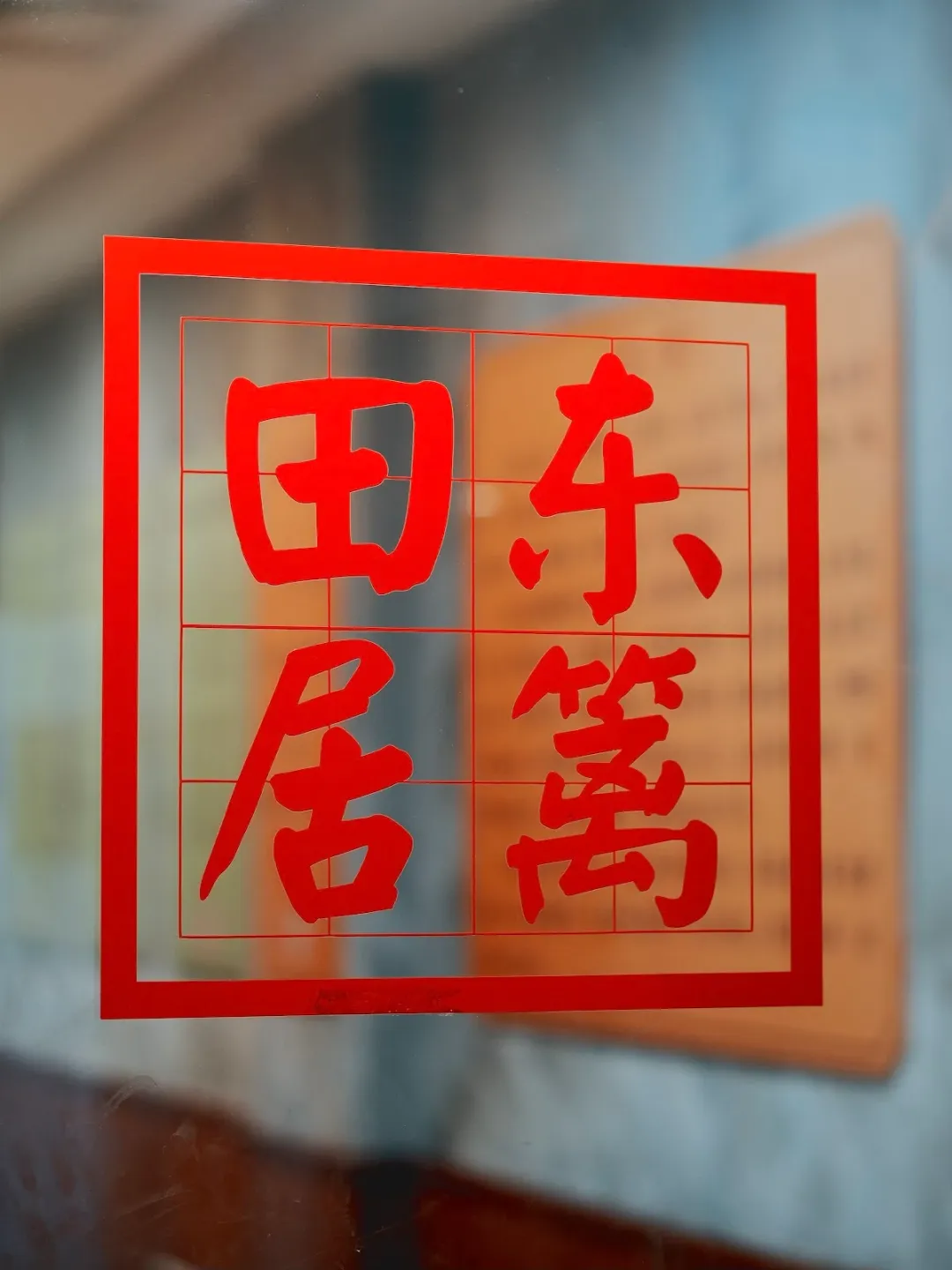 在“东篱田居”的红色招牌下,我们满足地结束了晚餐,随即投入到城市湿润、浓厚的夜色中。