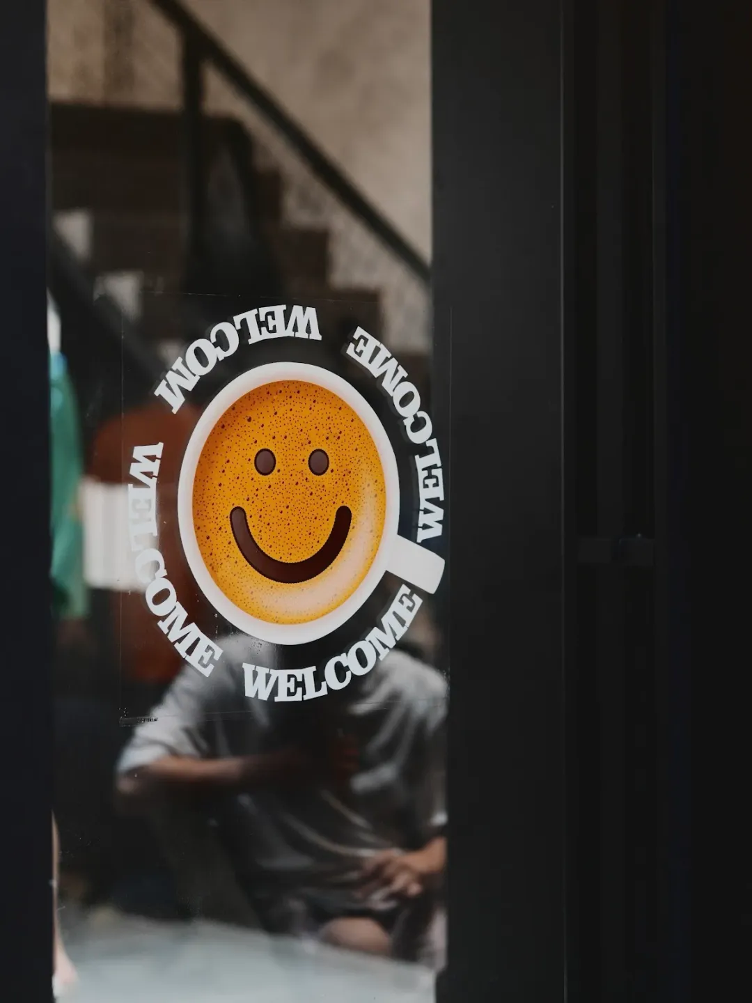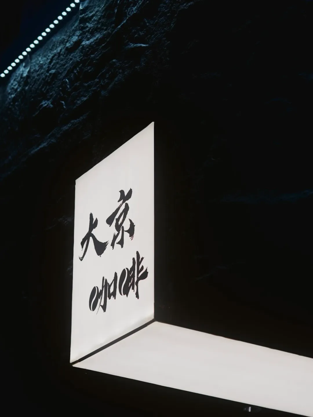我们短暂地被“大京咖啡”的艺术气息吸引。黑白色的招牌邀请我们进入片刻的宁静。店内,一个黑白相间的咖啡杯幽默地印着“美式就嗦粉”——这正是柳州美食融合的完美象征。继续前行,一个微小的快乐细节映入眼帘:另一个咖啡杯上的笑脸,在窗户中探出头来,为夜色增添了俏皮。