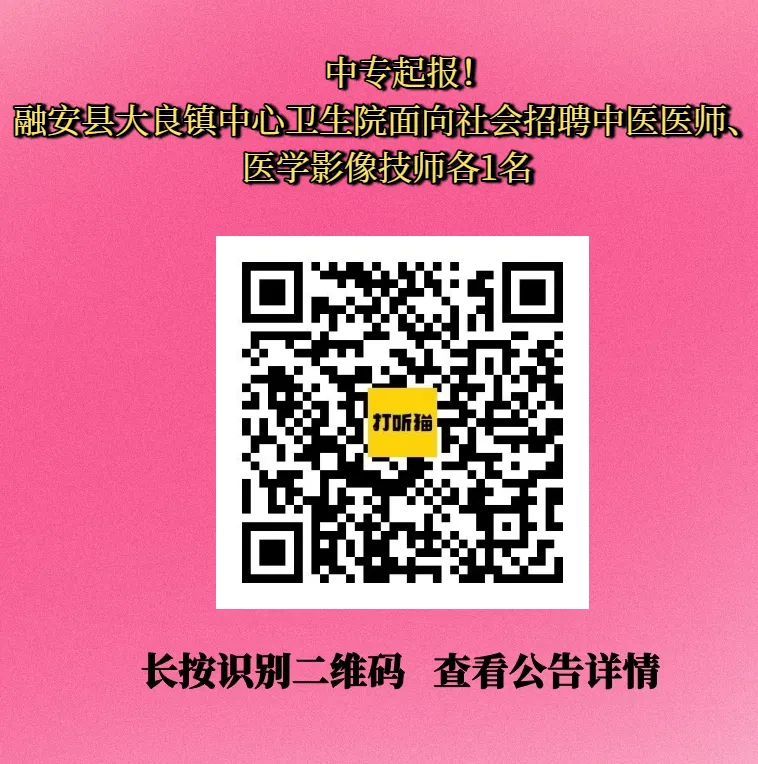 >【柳州招聘】中专起报!融安县大良镇中心卫生院面向社会招聘中医医师、医学影像技师各1名!
