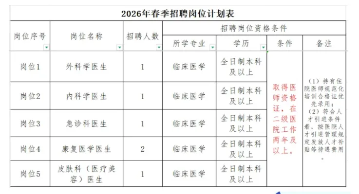 根据医院业务发展需求,现向社会公开招聘以下岗位人员,具体招聘事宜如下: