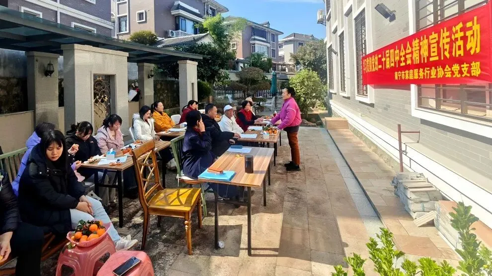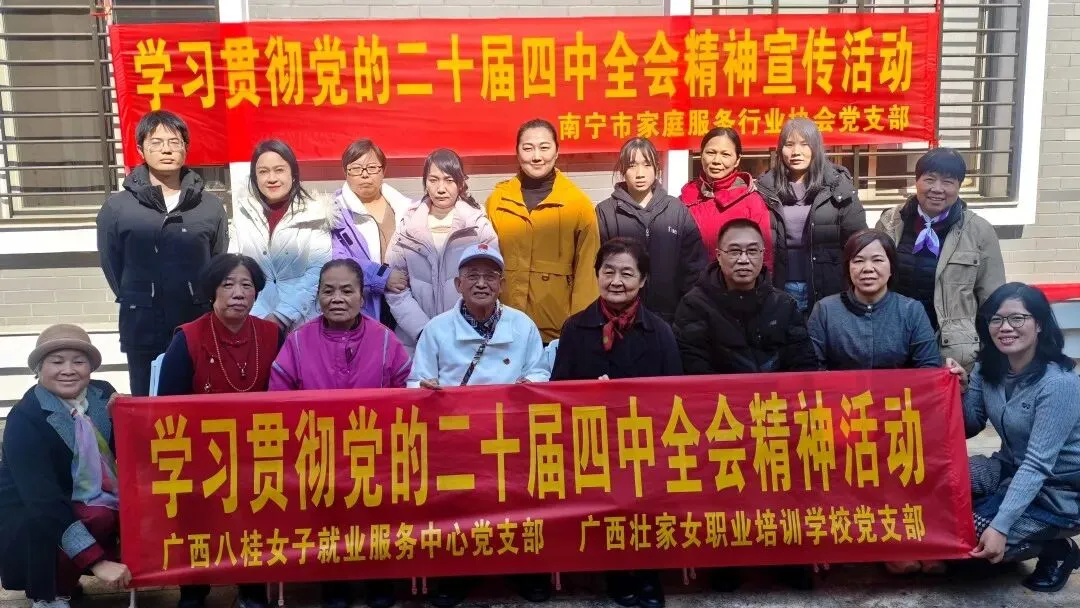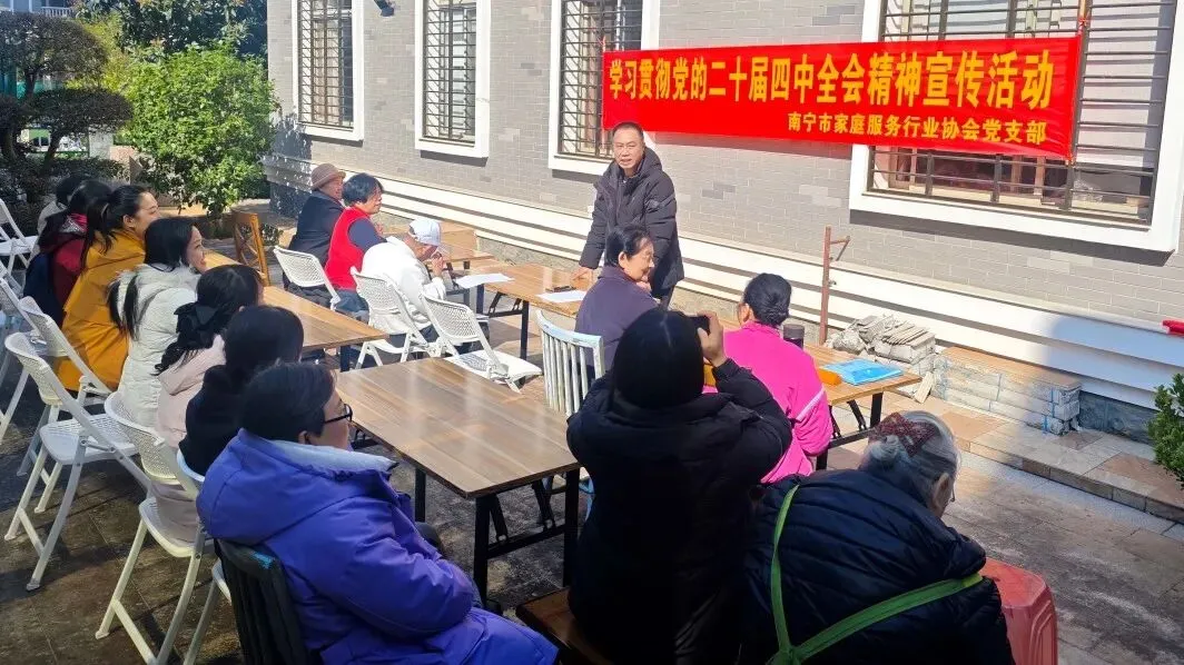 为深入学习贯彻党的二十届四中全会精神,传达落实南宁市总工会相关工作部署,强化党建引领作用,凝聚行业发展合力,2026年1月6日,南宁市家庭服务行业协会党支部、南宁市家庭服务行业工会联合会暨广西康之桥护理服务有限公司、广西八桂女子就业服务中心、广西南宁桃李园职业技能培训集团有限公司、广西壮家女职业培训学校和南宁康之桥职业培训学校等相关党支部党建活动在武鸣区美好家园顺利举行。