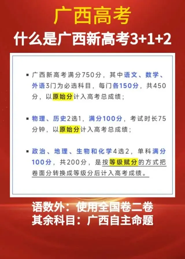 广西目前实行的最新高考政策,高中家长转发。