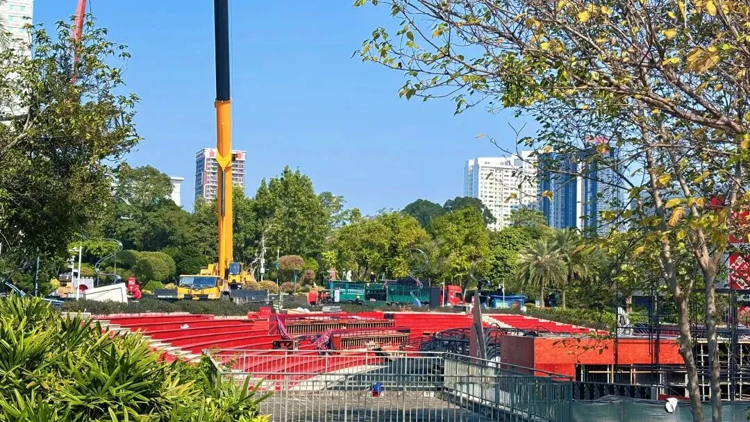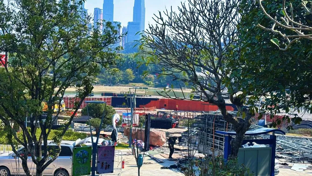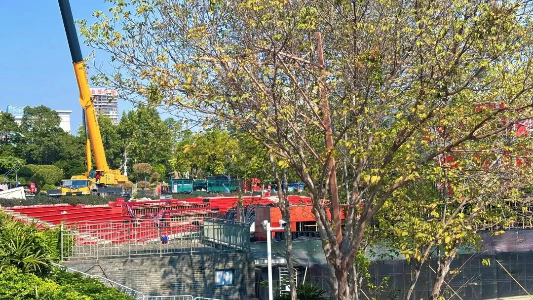 今天中午去了一趟民歌湖那边,刚出地铁口就看见一台高高升起的起重机械,再往前面一点就看见之前爆改了的民歌湖大舞台正在拆除中,东西设备也慢慢拉走了……