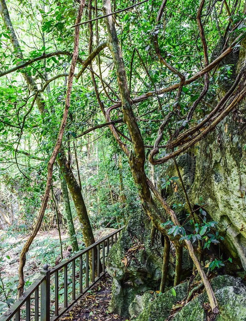 空中走廊全长约1.3公里,最高处离地近30米,采用钢结构与防腐木结合建造,依山就势蜿蜒于参天古木之间。整条走廊呈“之”字形上升,坡度平缓,适合各年龄段游客安全通行。其设计充分考虑生态保护原则,施工过程中未砍伐一棵原生树木,所有支撑点均巧妙避开主干,最大限度减少对雨林生态的干扰。