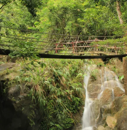 在中越边境的层峦叠翠间,屏峰雨林公园以“国门屏峰”之姿,静踞东兴市“绿色后院”马路镇平丰村,距市区20公里,如一块温润翡翠镶嵌于山水画卷之中。