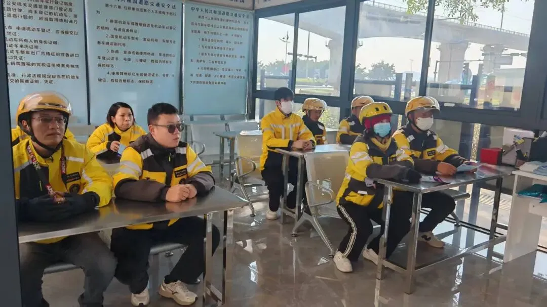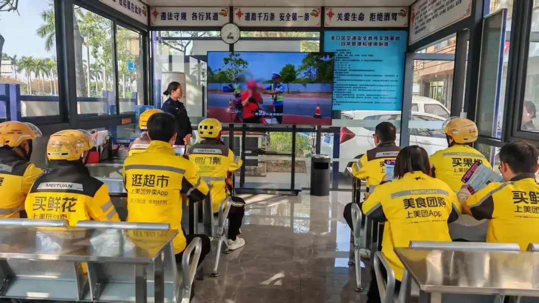 2026年1月9日,防城港美团骑手受邀前往防城港西湾女警亭参加港口区交警大队交通安全培训。