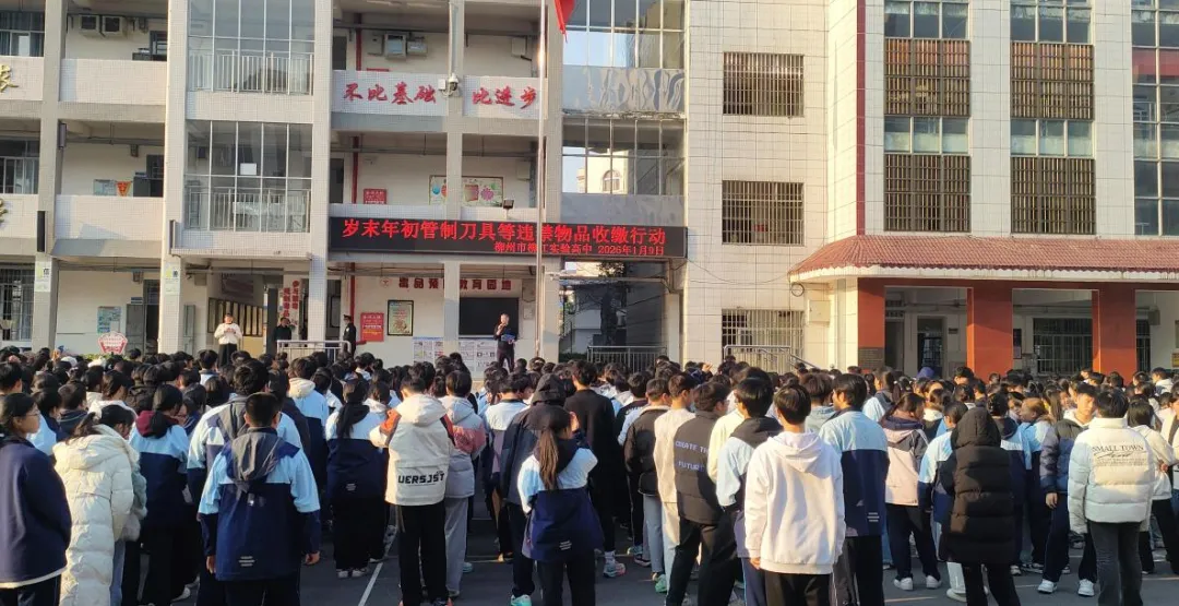 为筑牢校园安全防线,守护师生人身安全、维护校园正常秩序,在岁末年初安全防范的关键节点,我校于2026年1月9日下午,联合柳州市公安局柳江分局拉堡派出所,开展管制刀具及各类违禁物品专项收缴行动,全校师生共同参与、积极配合,切实筑牢校园安全屏障。为保障此次管制刀具及违禁物品专项收缴行动有序开展,学校安稳办提前制定了详实的行动实施方案。行动前期,学校通过多渠道宣传校规校纪与相关法律法规,向全体学生清晰阐释校园违禁物品排查收缴的重要意义,切实提升学生的规则意识与安全认知。学校谭德荣书记向全体师生作动员宣讲,他强调,此次专项行动既是落实国家校园安全相关法律法规及上级教育主管部门工作要求的必要举措,更是守护全体师生人身安全、维护校园平安稳定、助力学生健康成长的根本需要。同时,他勉励全体学生自觉遵守校园安全规定,不断增强自身安全防范意识,共同营造安全、和谐的校园环境。随后,柳州市公安局柳江分局拉堡派出所覃柳生指导员为全体师生开展法治教育宣讲,并作管制刀具收缴专项行动总动员。覃指导员围绕管制刀具危害、相关法律规定、未成年人违法犯罪预防等核心内容展开讲解,旨在强化全体师生的法治观念与法律意识,从源头防范校园安全隐患,为打造平安、稳定、和谐的校园环境筑牢法治根基。最后,学校安稳办对收缴工作进行详细部署,采取按班级分组的方式,安排教师对各教室逐一排查;拉堡派出所干警联合班主任与任课教师,对学生寝室开展“地毯式”清查,做到不留死角、不漏一处。清查过程中,各组严格执行登记制度,确保违禁品收缴全程留痕、处置规范。在全体班主任与任课教师的积极配合下,派出所干警对学生寝室进行了细致全面的检查,对发现的管制刀具等违禁物品依法依规收缴,所有检查流程均严格按照学校规定完成登记备案,保障了此次专项行动规范、有序、高效推进。本次专项收缴行动的开展,有效排查并杜绝了危险品、违禁品进入校园的隐患,切实守护了学生的人身与财产安全。前期的宣传教育与现场的排查工作,也让全体学生深刻认识到校园安全的重要性,进一步强化了规则意识与安全观念。针对收缴的违规物品,学校制定了明确、规范的处理措施,严格按照流程处置,确保处理结果公正合理、有据可依。后续,学校还将通过主题班会、应急演练等多元化形式,持续深化校园安全教育工作,着力提升学生的安全防范意识与自我保护能力,从源头遏制各类安全风险,全力打造安全、健康、和谐的校园育人环境。