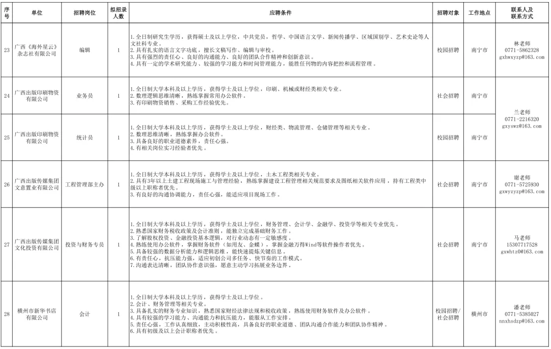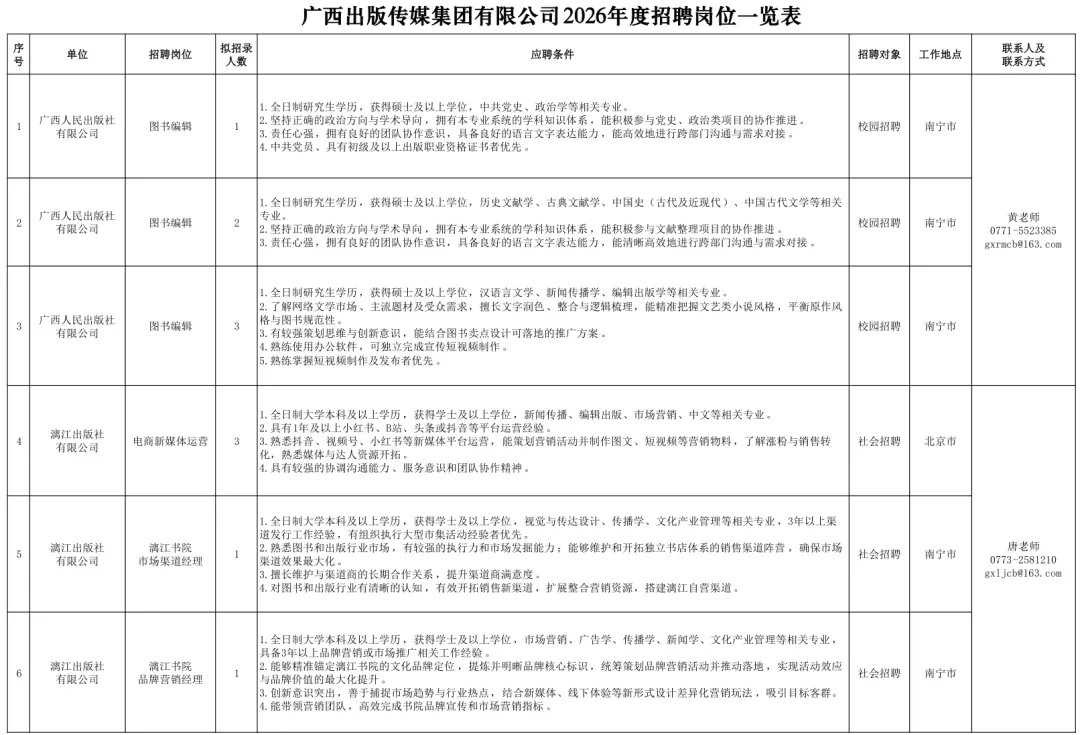 附件1.《广西出版传媒集团有限公司2026年度招聘岗位一览表》