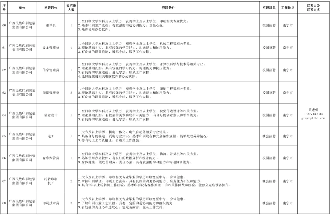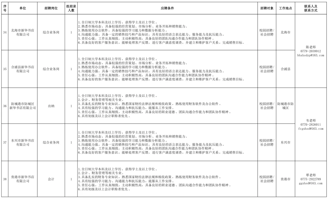 (部分招聘岗位、点击查看大图)