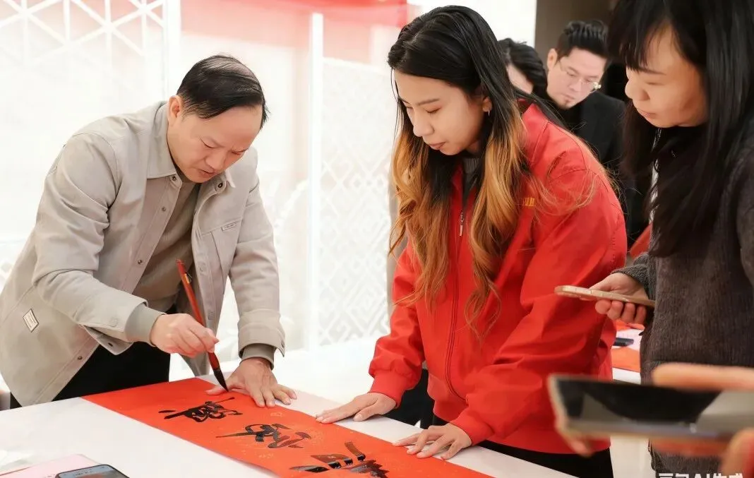 活动现场,员工们怀揣着对新春的美好愿景踊跃参与,书法名家们挥毫泼墨、笔走龙蛇,现场创作定制春联,将真挚的新春祝福倾注笔端,送到每一位员工手中。