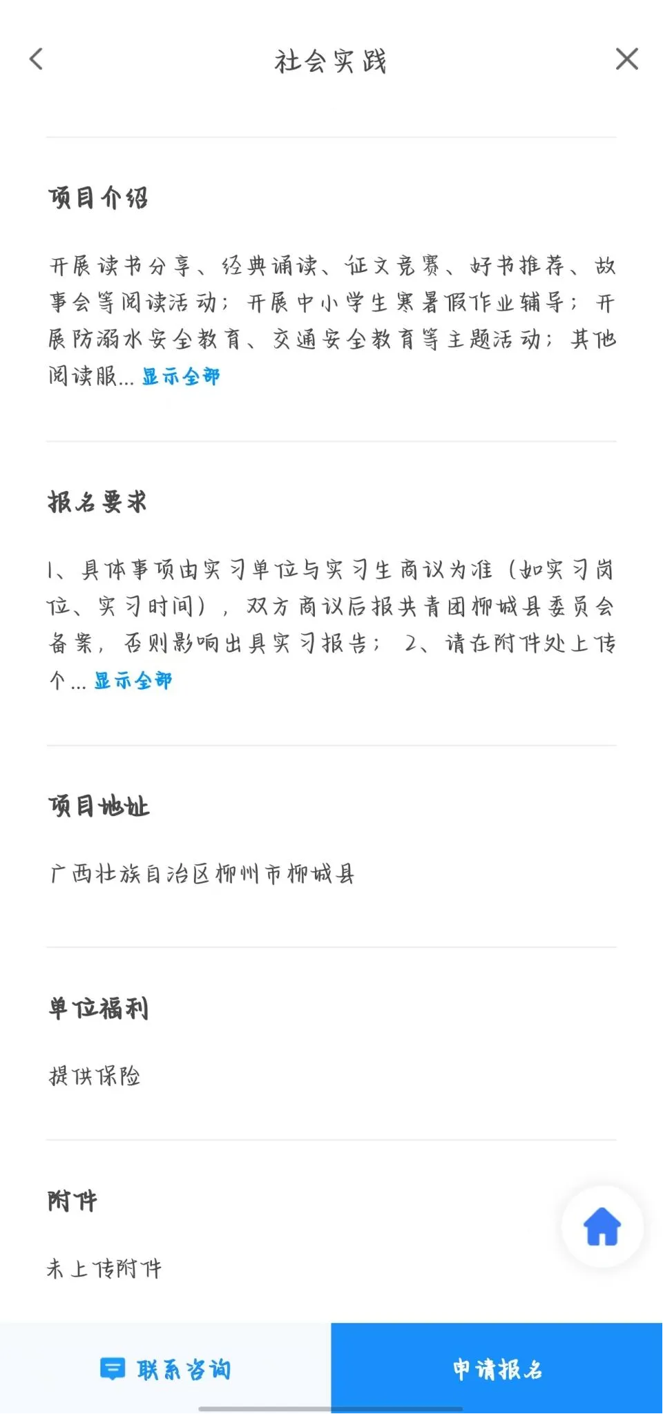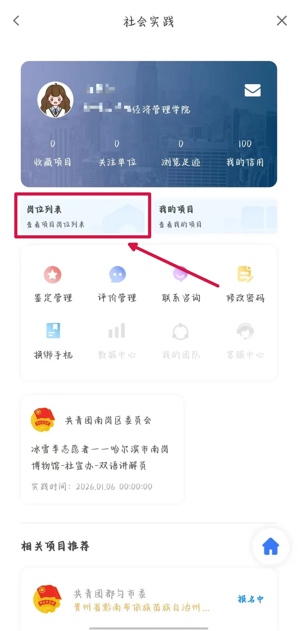登录成功后点击“返家乡项目”—项目列表,浏览单位发布的项目/岗位信息,浏览项目/岗位信息详情,选择中意的项目/岗位报名。