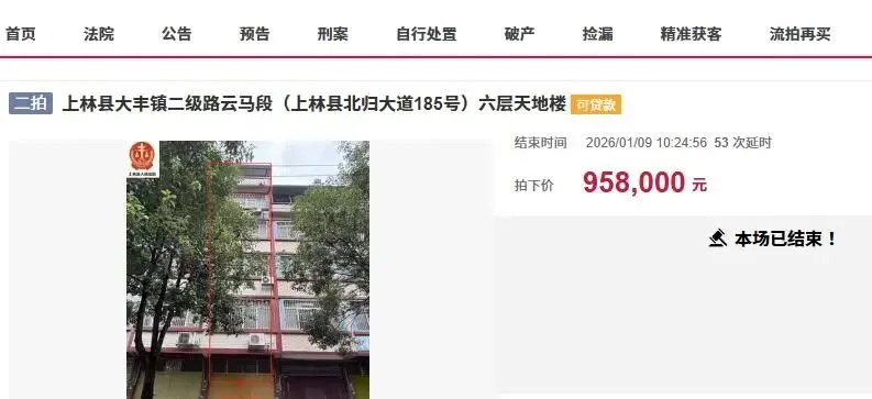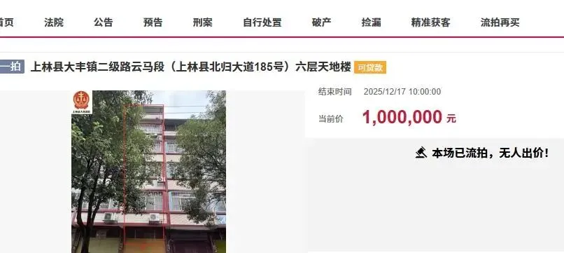 这栋天地楼此前被拍卖过一次,起拍价100万元起,最终没有人报名竞拍而流拍了。