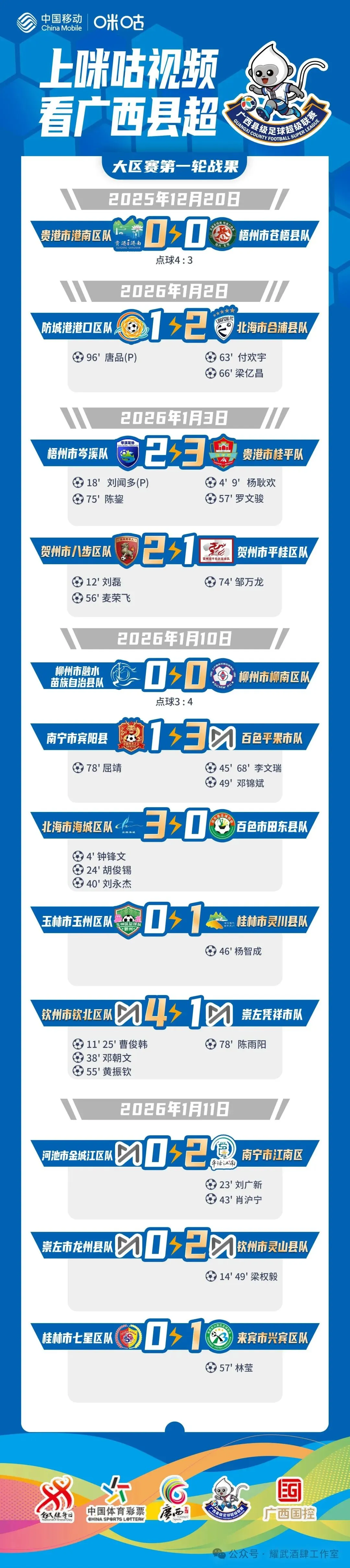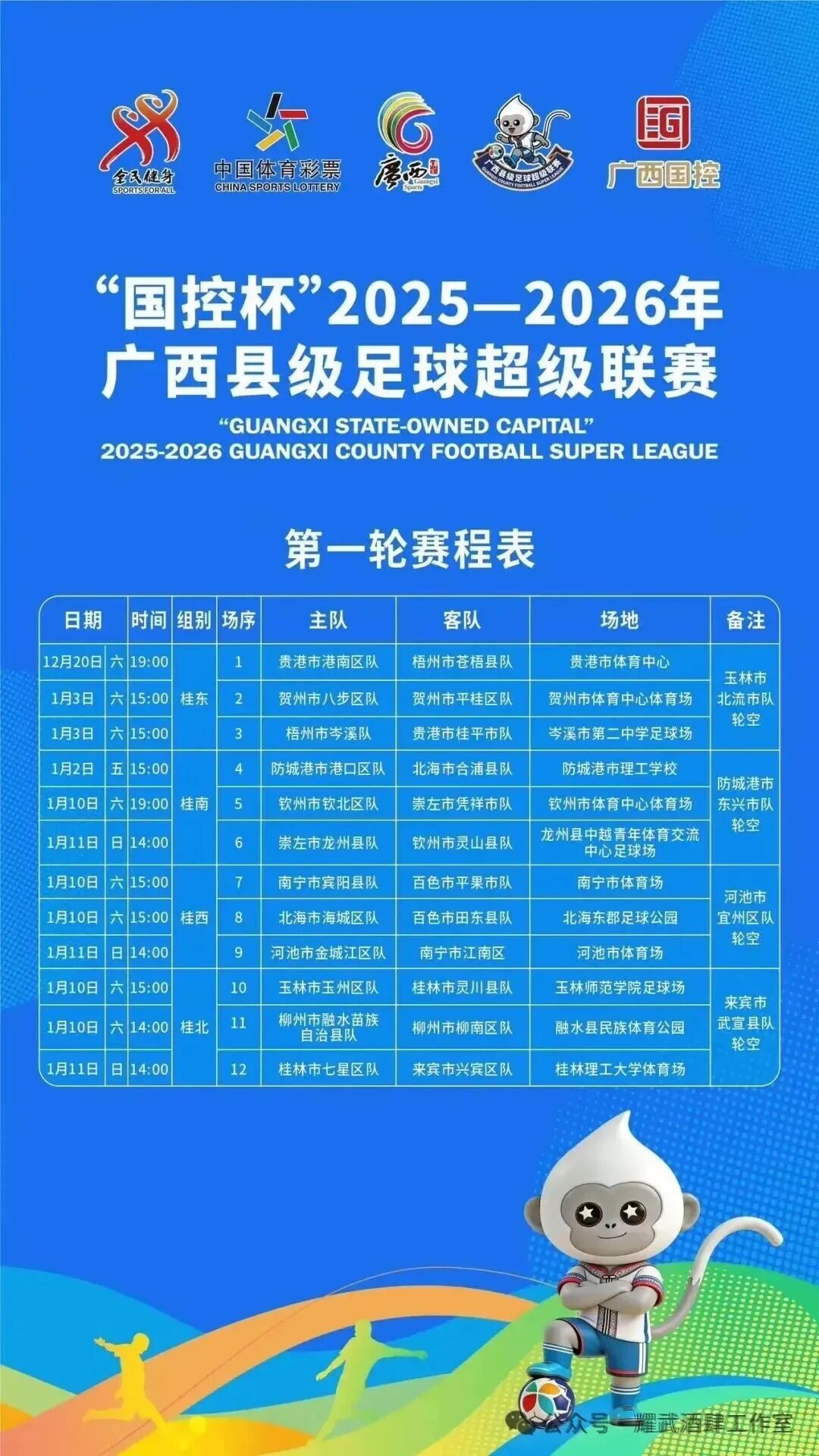 “国控杯”2025-2026赛季广西县级足球超级联赛(广西县超)第一轮1月10-11日赛程赛果