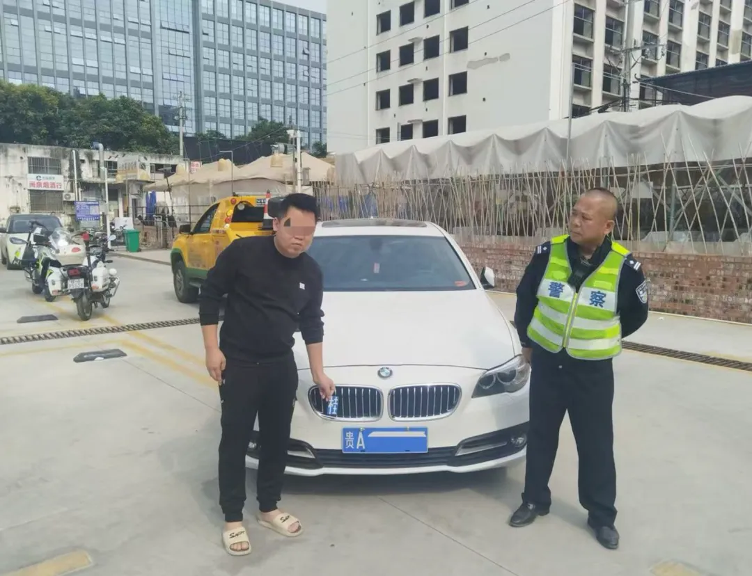 当天上午11时许,民警根据线索在平西支一路一停车场内查获一辆涉嫌变造号牌的机动车。经现场核查确认,该车实际车牌为“贵A”,驾驶人陈某使用变造手段将“贵”字覆盖为“桂”字,属于使用变造机动车号牌的违法行为。