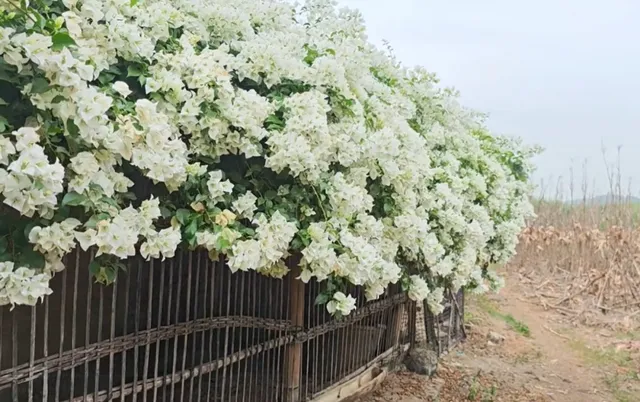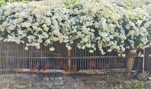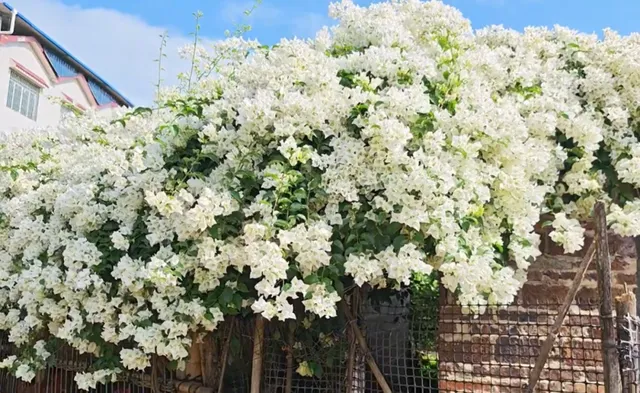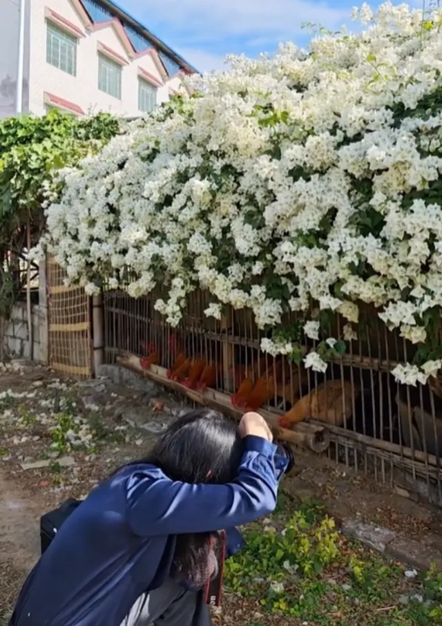 最近,柳州一太太家的鸡舍就火了,不为别的,就为了鸡舍上这一株盛放的三角梅,大片白色的花朵如瀑布一般垂落,网友直夸:太美了!