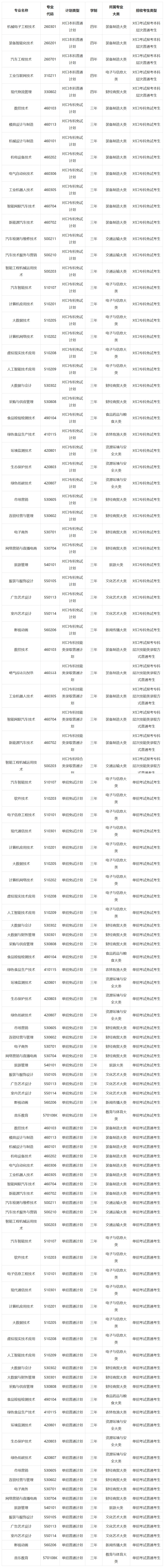 第十条 学校2026年广西职教高考招生专业如下: