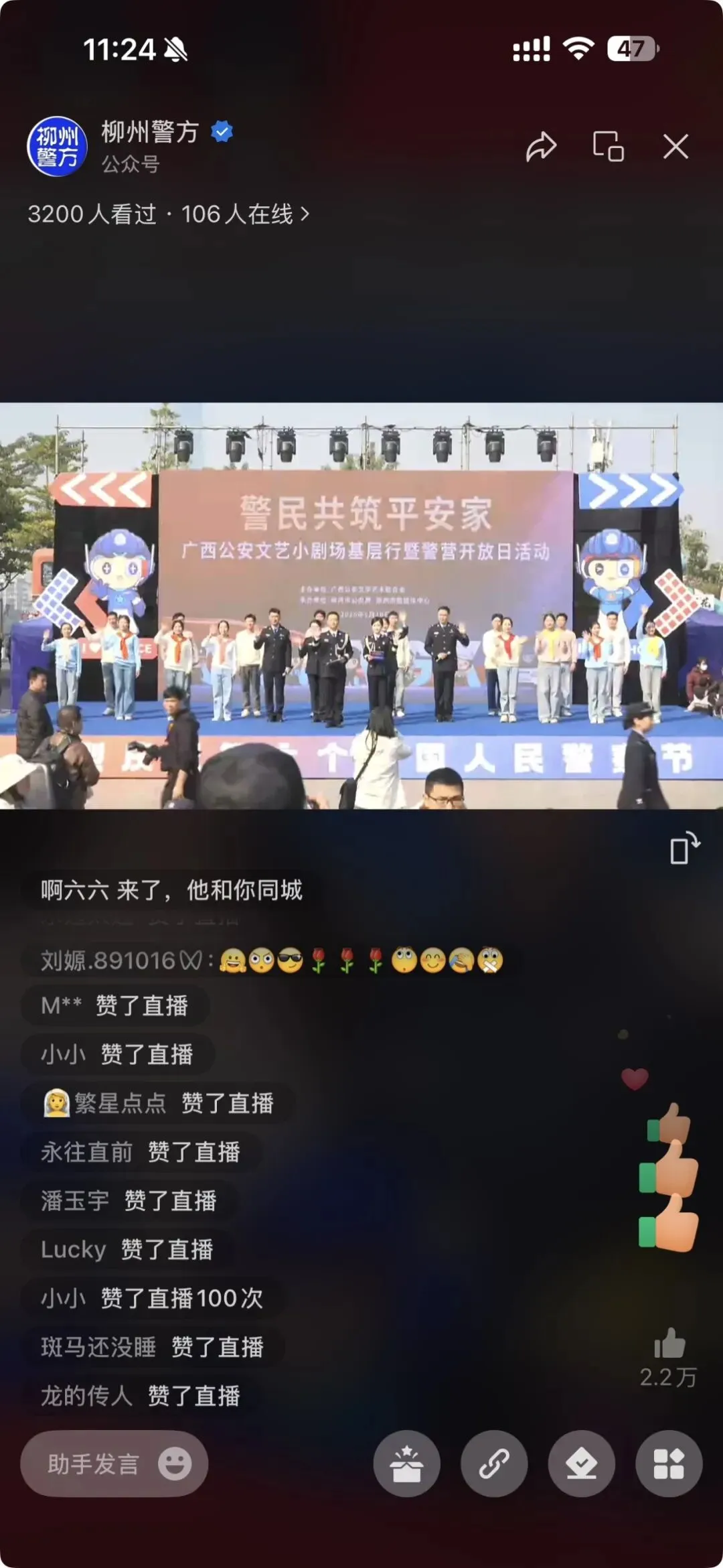 央视新闻、柳州1号、柳州政法、青春柳州、柳州警方、柳州交警的新媒体账号对本次活动进行了同步直播,全网收看量50万+。