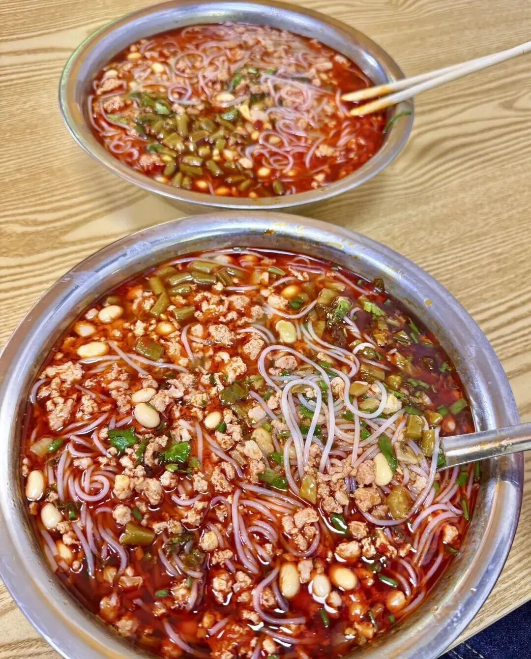 不是螺蛳粉 , 是细干切粉 , 红油拌的那种。 说实话 , 我之前根本不知道柳州还有这个吃法 , 一直以为柳州就只有螺蛳粉出名。