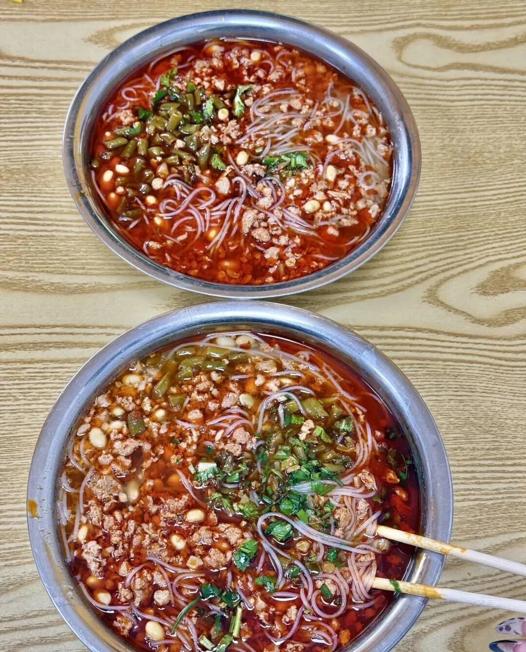 结果这碗粉直接把我看饿了 , 那个红油的色泽 , 配菜堆得满满当当 , 光看图我口水都要流下来了。