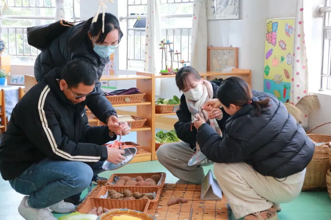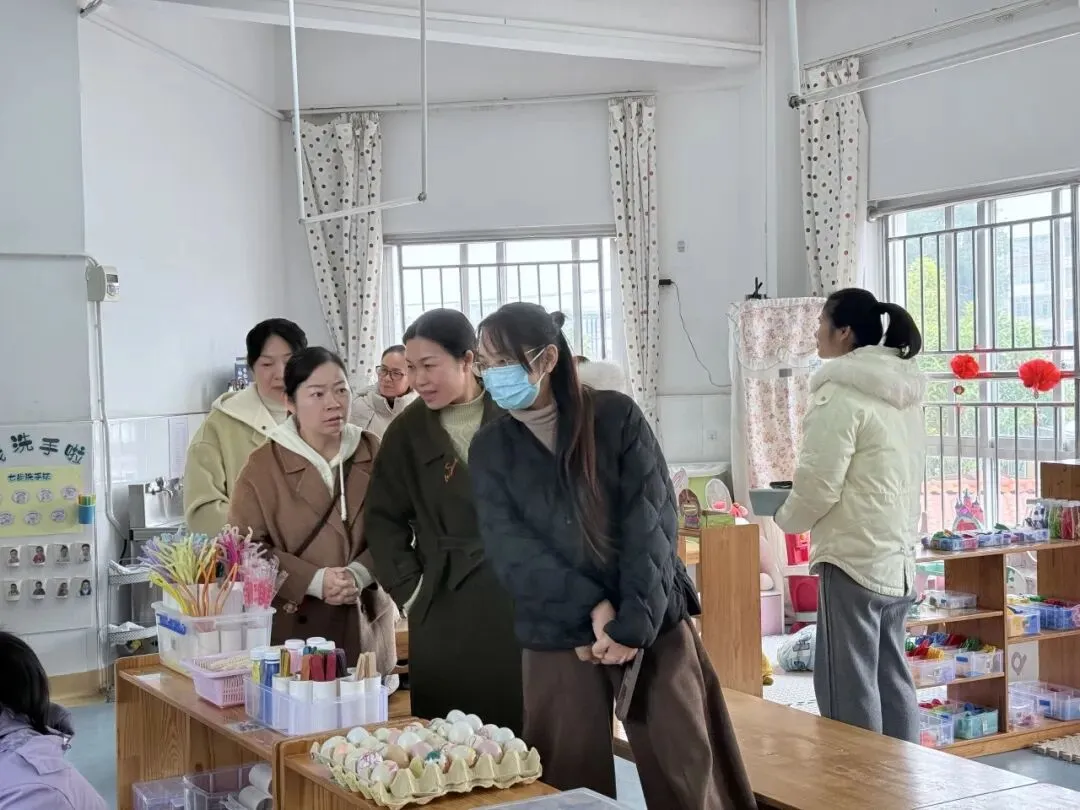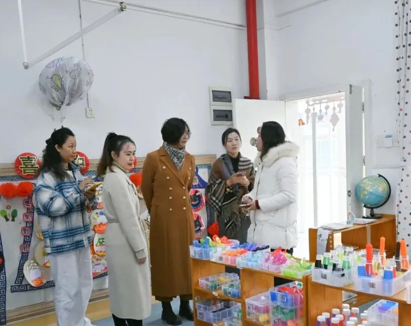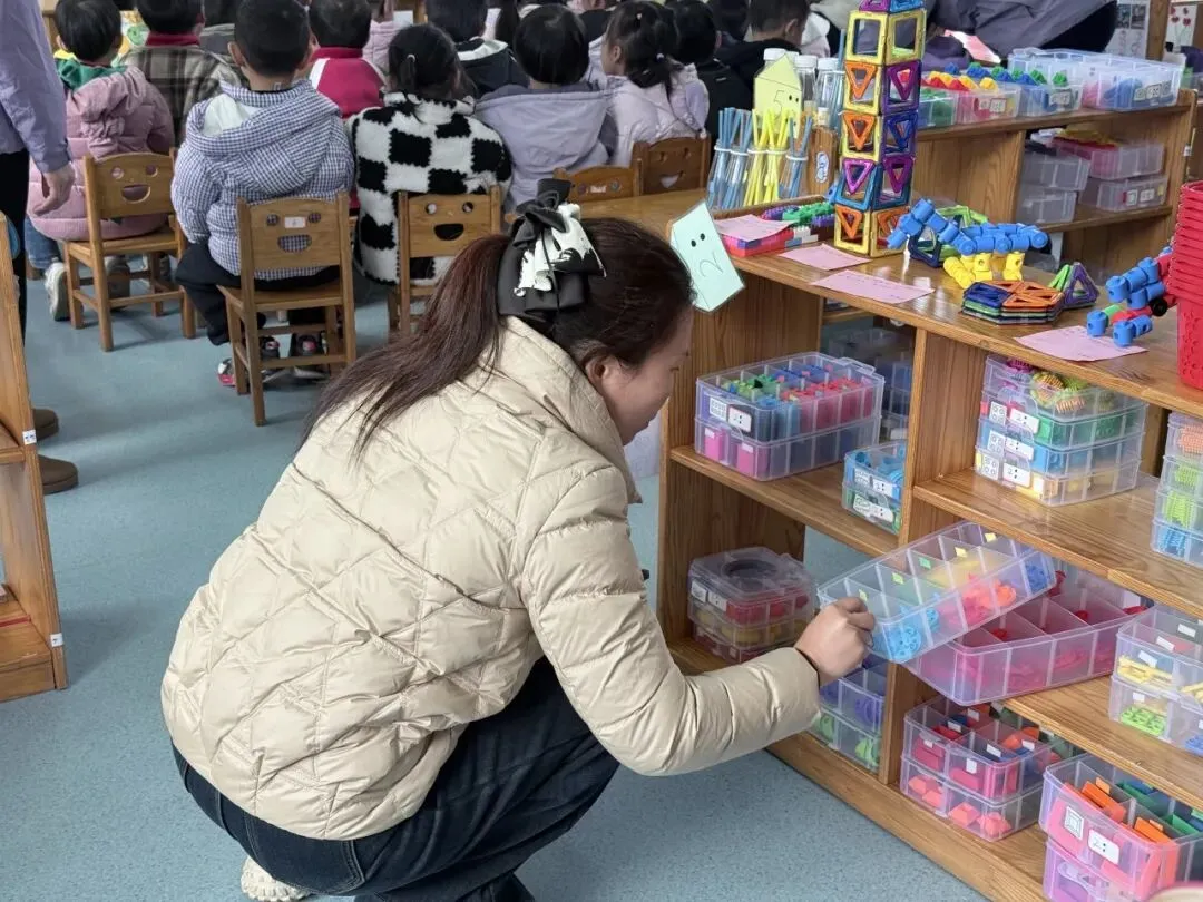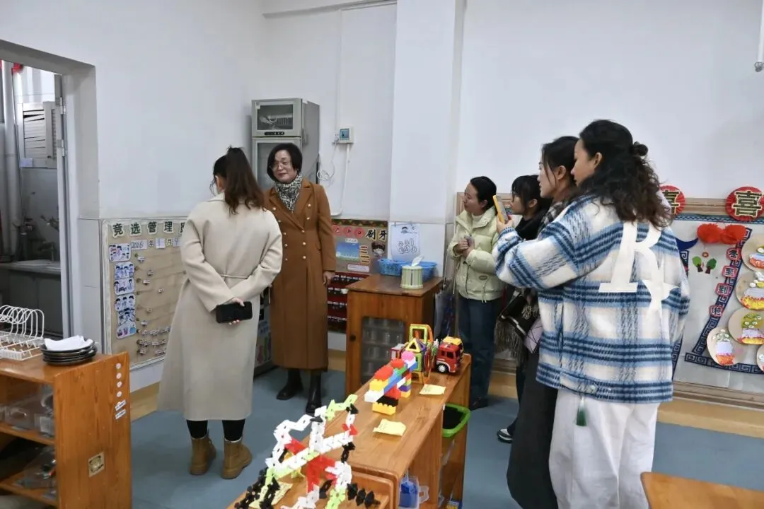 讲座结束后,参会教师走进我园班级进行实地观摩。在樊彦宏园长的陪同下,大家细致观察了班级环境创设与材料投放。从区域布局到材料收纳,从墙面呈现到幼儿作品展示,每一处细节都体现了以儿童为主体的环境理念。
