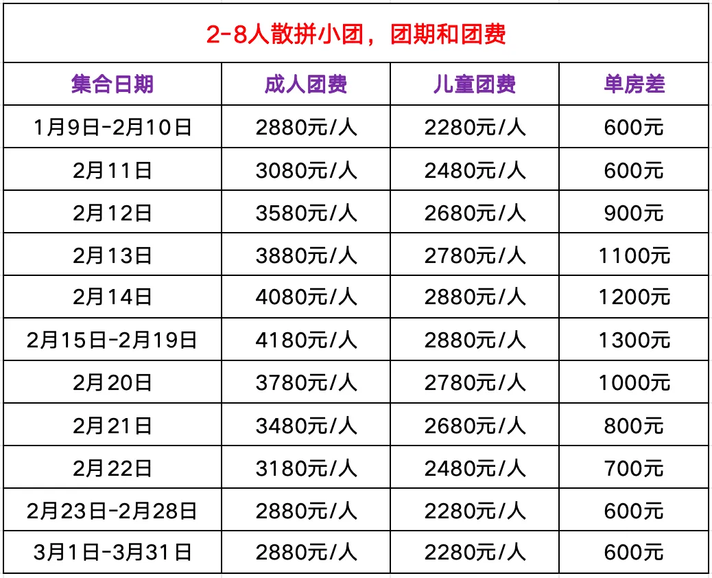 2~8人精品小团 更自由