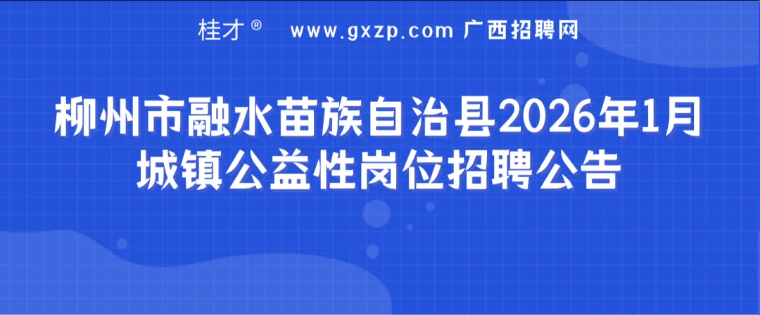*信息来源:融水苗族自治县2026年1月城镇公益性岗位招聘公告(本站所有公招信息皆为转发,若有任何疑问请根据原文所留联系方式进行咨询,本站对任何公招信息皆无解释权。如有侵权的行为,请及时与本站客服联系,我们将立即删除并配合妥善处理。)