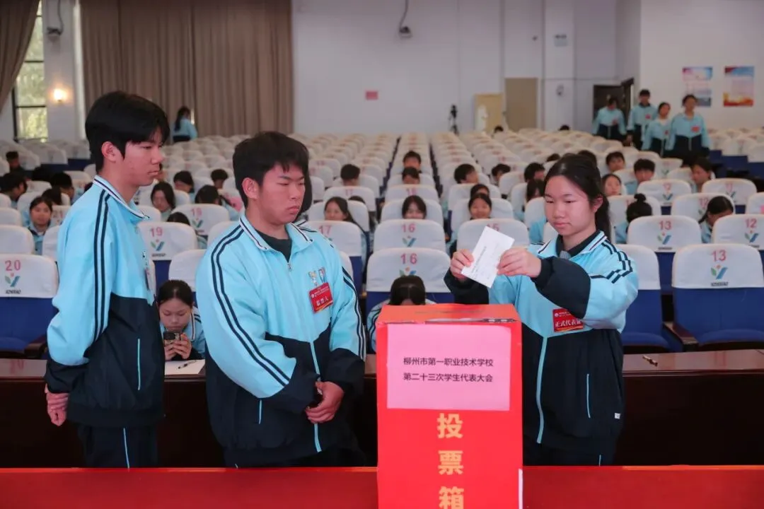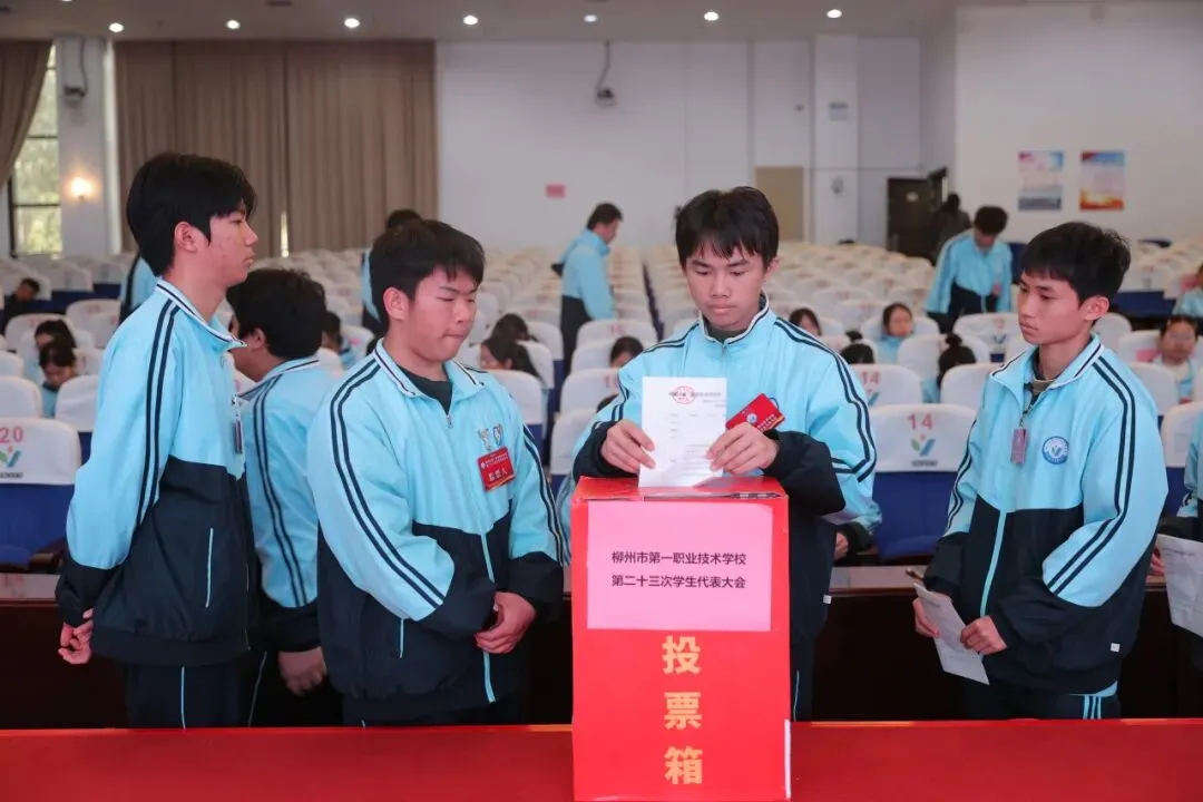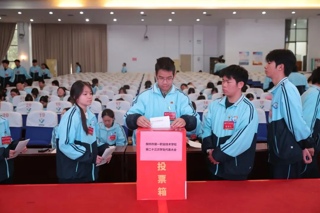 伴随着昂扬的校歌,柳州市第一职业技术学校第二十三次学生代表大会胜利闭幕。