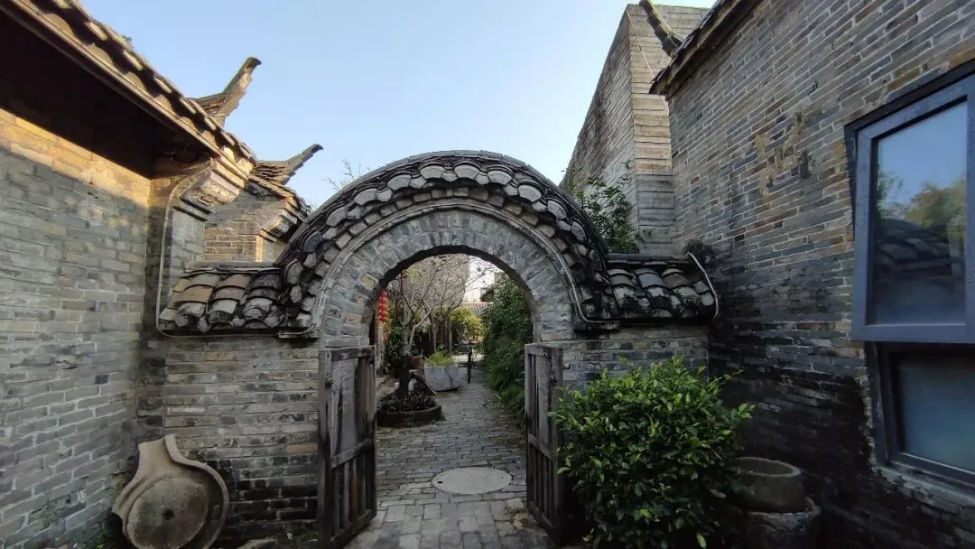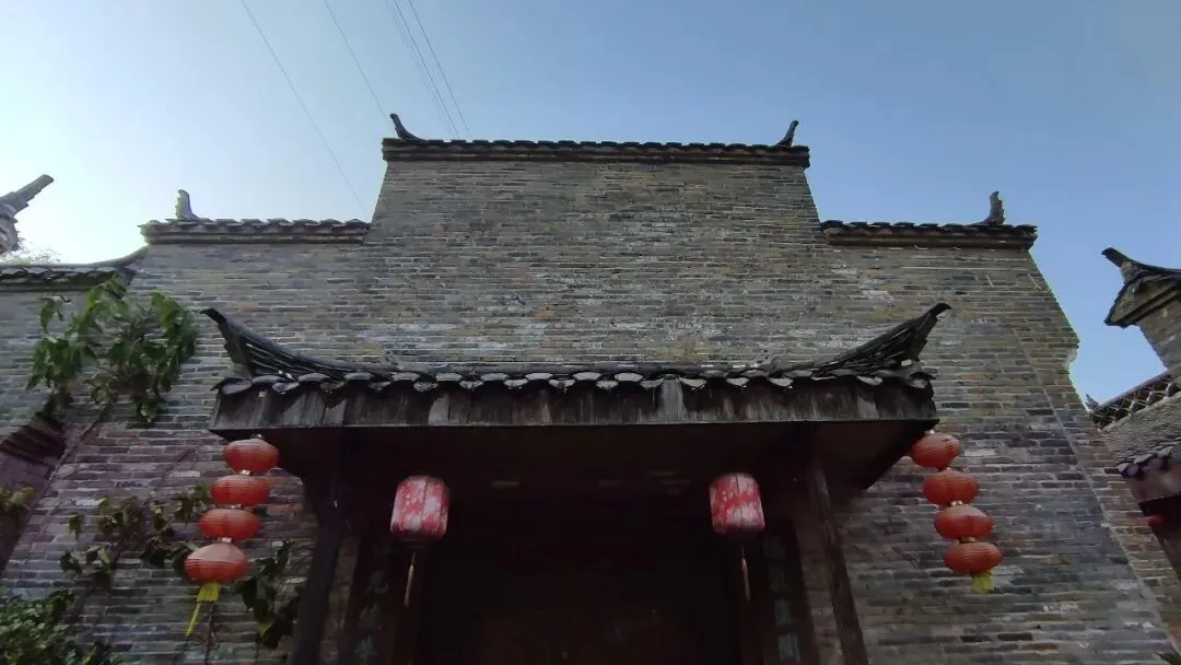 这里的建筑青砖为基,砖色并不统一,从青灰到黛黑,深浅交错犹如水墨画。房屋建筑格局方正,其檐角飞扬,在蓝天下形成优美的弧线。