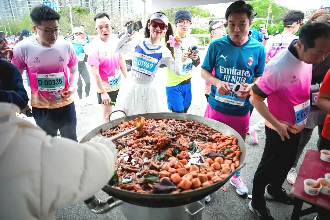 ▲ 终点美食处,为选手提供免费赛后美食,特色小吃、网红饮品等等,帮助选手补充长距离跑步后消耗的能量,尽情享受完赛的喜悦;