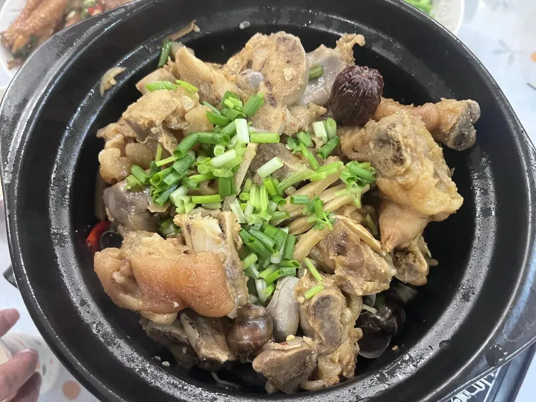 焖煮时间。最后一步把炒好的螺蛳和猪手放入砂锅,加入清水(有条件的用高汤)小火焖50分钟左右,最后加入葱花,收汁即可完成。