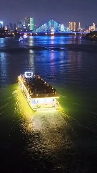 邕江夜游船风大时别去,票价不便宜,江面一黑一亮,看几座桥也就那样。