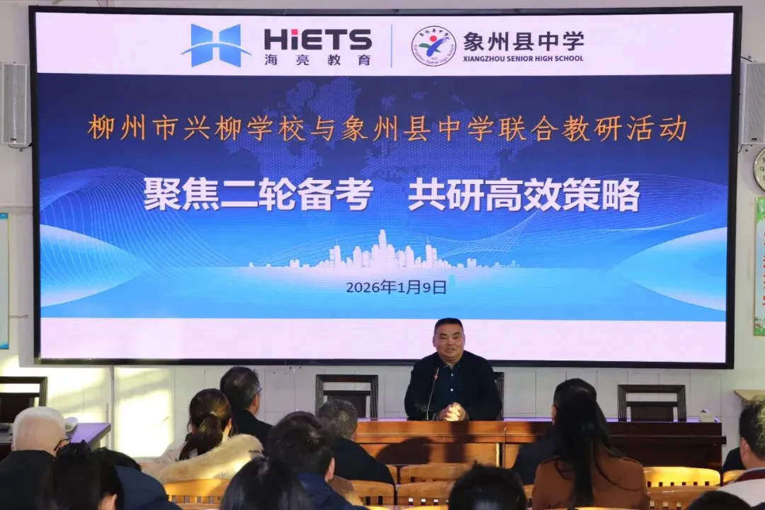 为进一步推动校际教育教学交流,共享优质教育资源,精准把握高考命题方向,优化二轮复习策略,2026年1月9日,柳州市兴柳学校与象州县中学在象州县中学成功举办了以“聚焦二轮备考,共研高效策略”为主题的高三二轮备考联合研讨活动。本次活动还特邀象州县第二中学、象州县职业技术学校教师到场观摩,共同营造了开放、协同、共进的教研氛围。