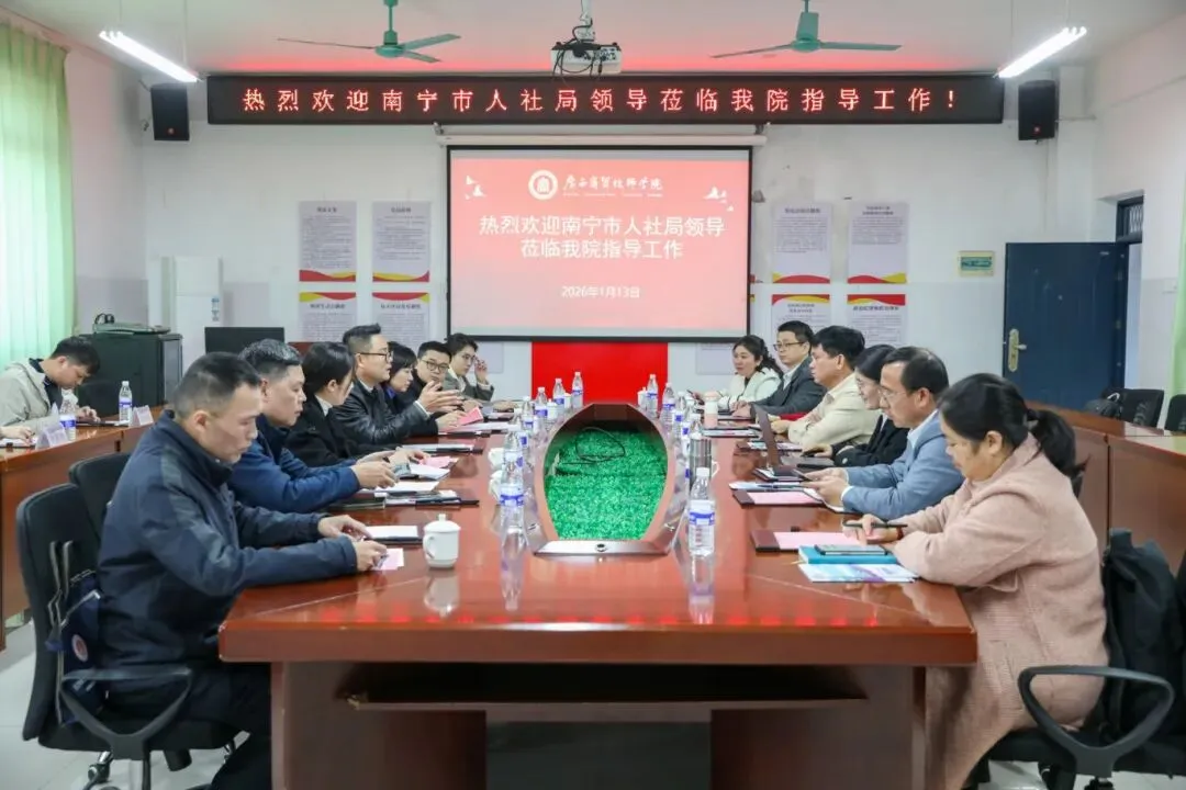 吴新华副局长听取汇报后,对我院在技能竞赛等领域取得的成果给予了积极评价。针对学院培训鉴定工作,他指出学院应进一步整合资源,依托区位优势,打造面向社会的标志性人才孵化基地,并在公共实训平台市场化运营、提升培训规模、开拓新赛项等方面持续深化。最后他表示,希望学院能够依托现有专业、设备与人才资源,在后续工作中为第四届全国职业技能大赛广西赛区的筹办工作提供支持与帮助。