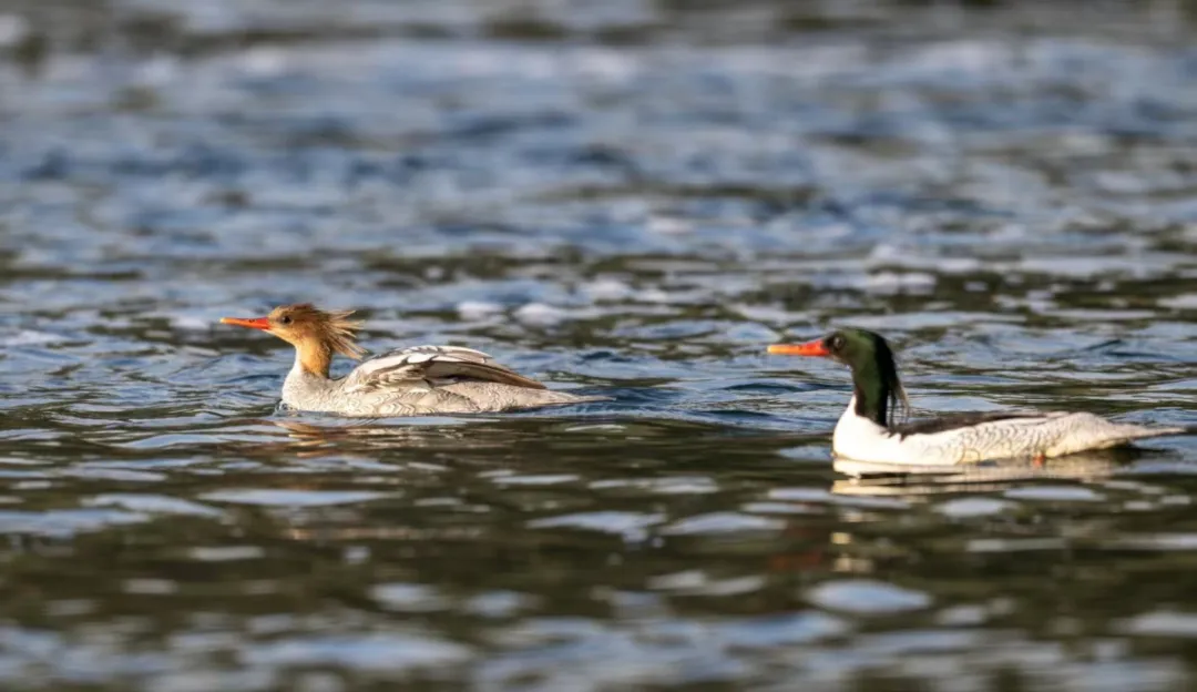 提早结对的秋沙鸭形影不离。本文图片由广西陆生野生动物救护研究与疫源疫病监测中心提供