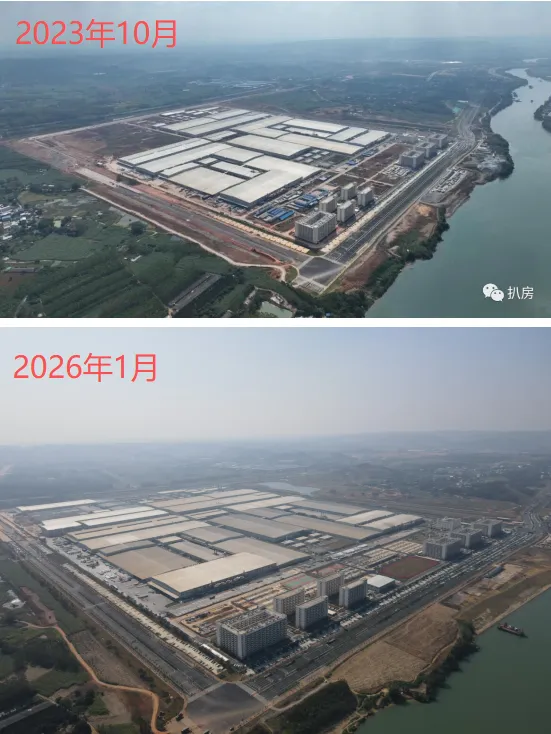 从航拍图中可以看到,比亚迪伶俐厂已整体建成并投产。