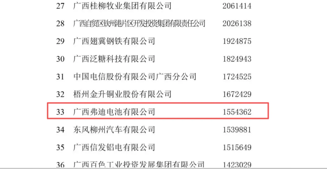 在2025广西企业100强榜单中,广西弗迪以营业收入155.4362亿,位列33。