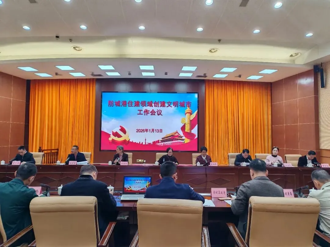 2026年1月13日上午,防城港市住建领域创城工作会议在市会议中心召开。市人大常委会副主任黄子洮、李拥琴、李燕玲,副市长佟义东,市政协副主席陈建林出席会议。会议深入贯彻落实市委、市政府创建全国文明城市工作统一部署,全面总结当前住建领域创城工作进展,精准分析第三方反馈问题,系统部署住建领域创建全国文明城市三年行动,进一步压实责任、凝聚合力,为防城港市成功创建全国文明城市筑牢住建根基。