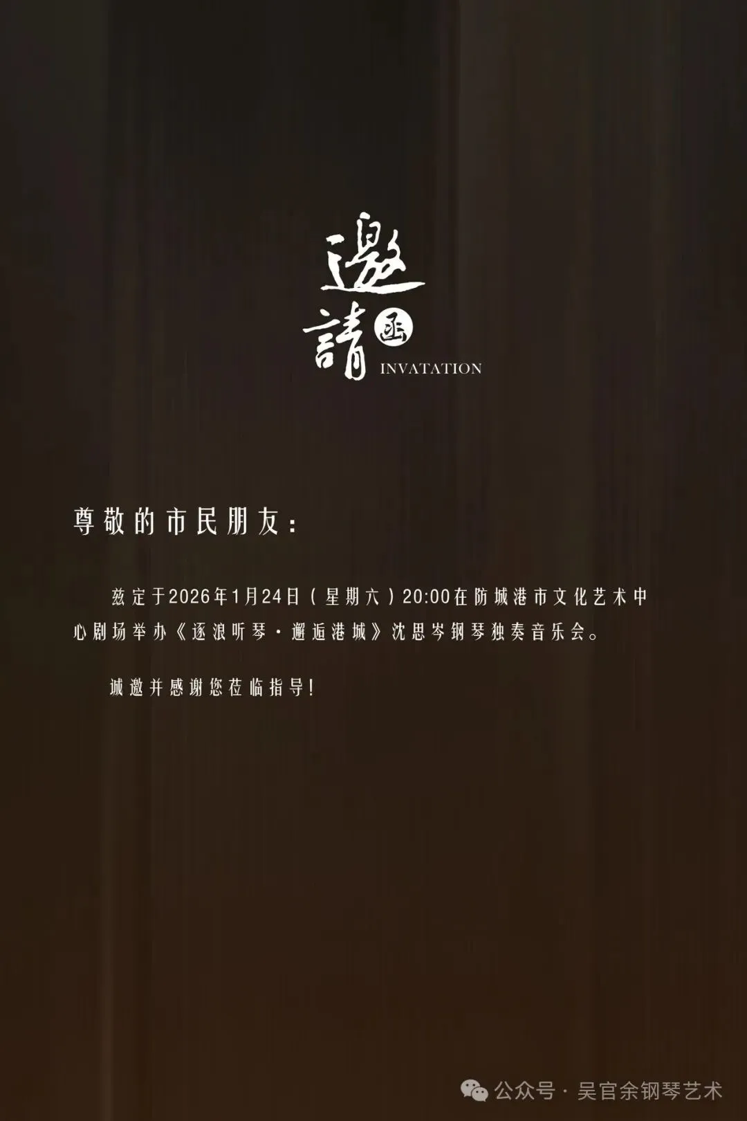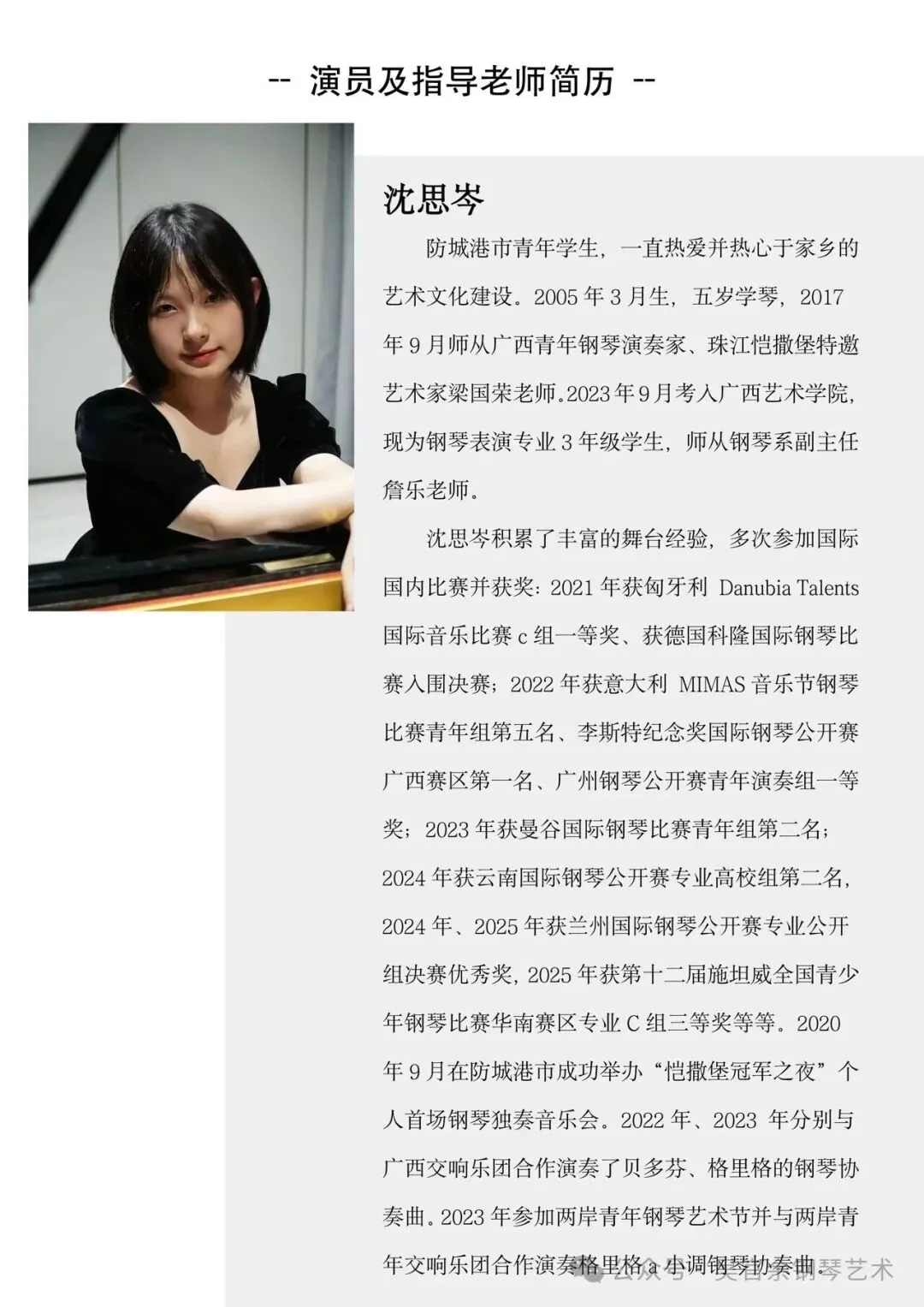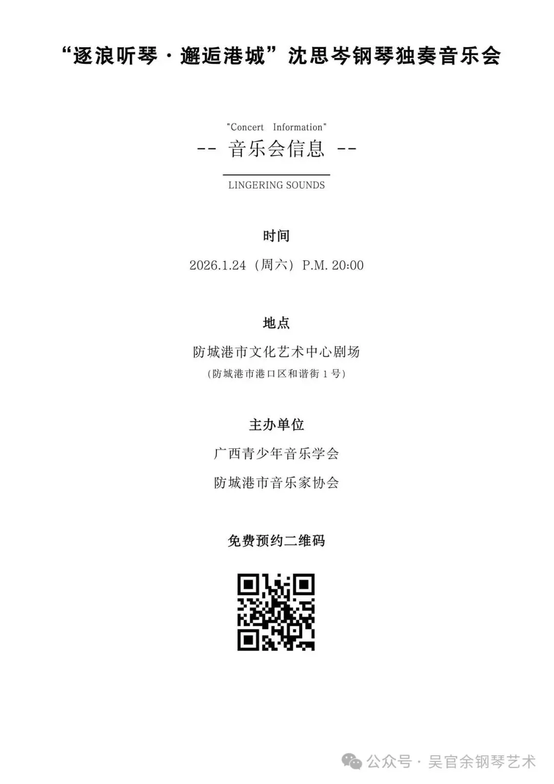 「免费预约」防城港市“逐浪听琴·邂逅港城”沈思岑钢琴独奏音乐会