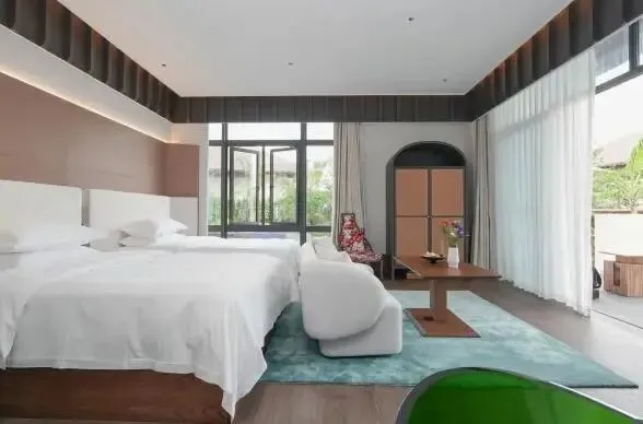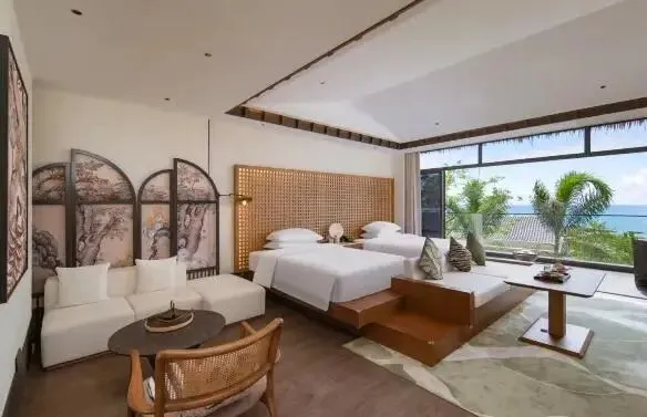 这里设有风格各异的客房:听涛双床房、 听 涛大床房、问潮套房、问潮亲子套房、问潮套房、观澜豪华套房,满足不同宾客的个性化需求。